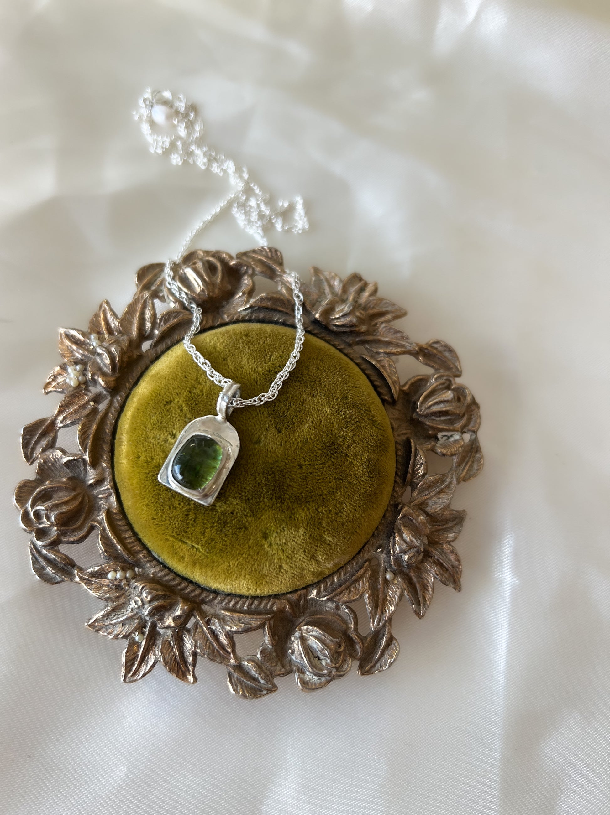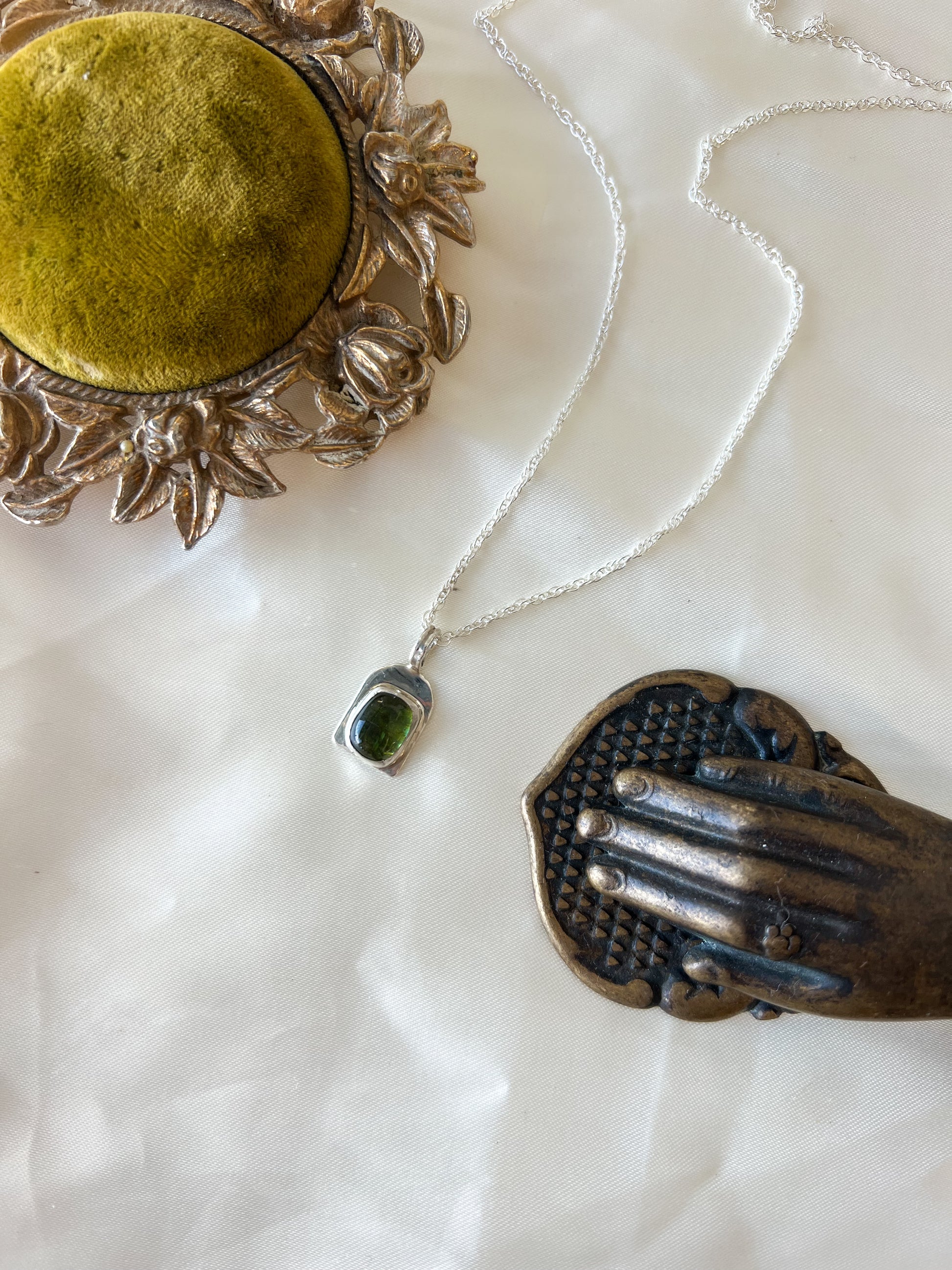 Set in sterling silver this stunner nearly glows! Gorgeous as a solo pendant, or perfect to pair with layers of other necklaces.