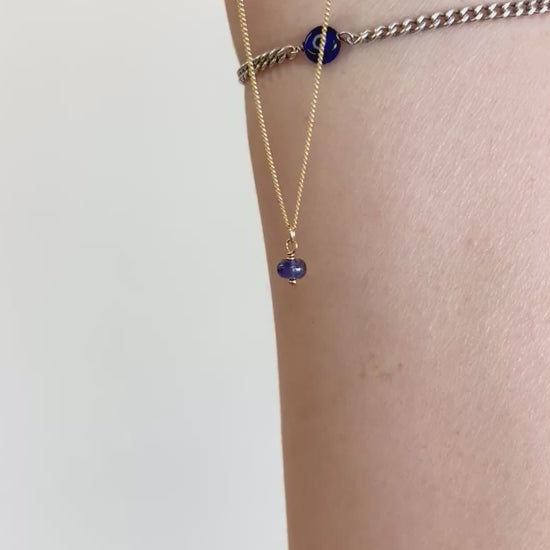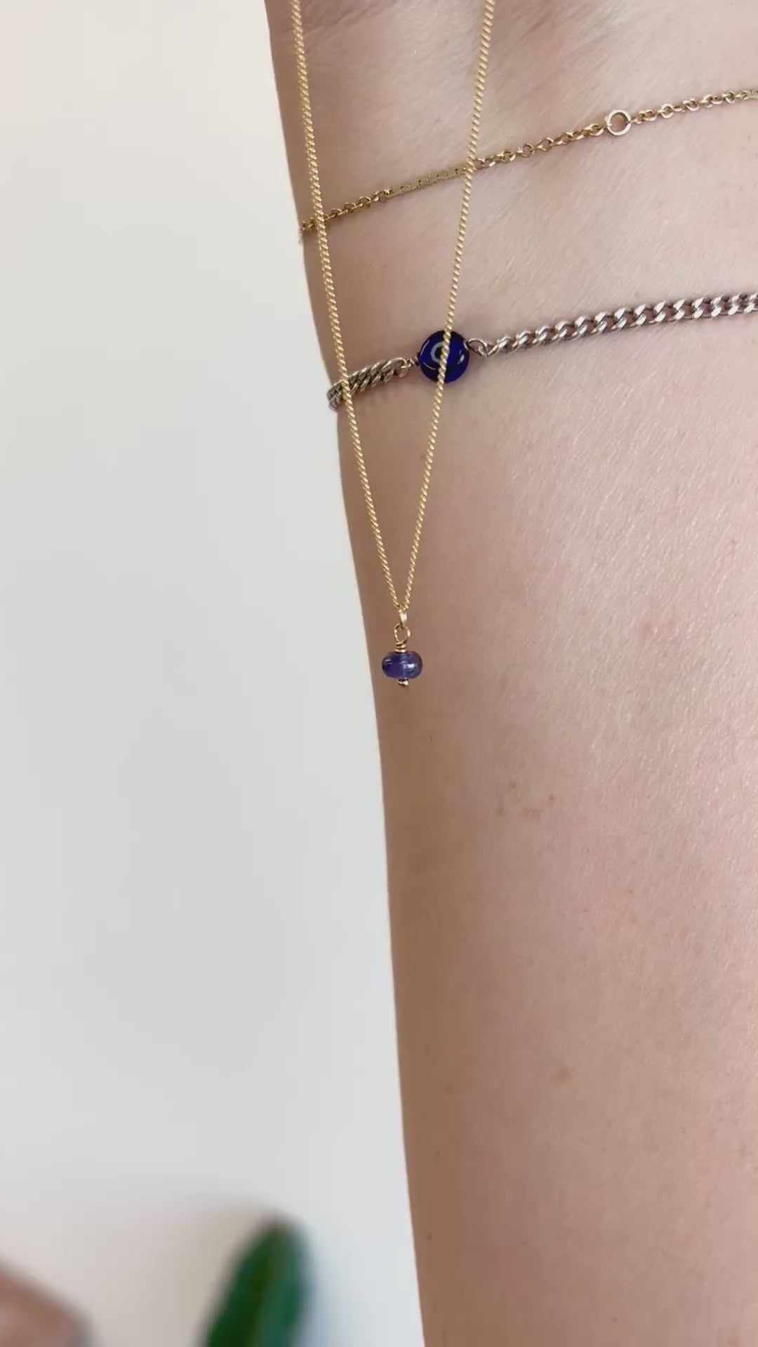 Gorgeous smooth blue sapphire floating on a 14k gold fill dainty whisper chain.