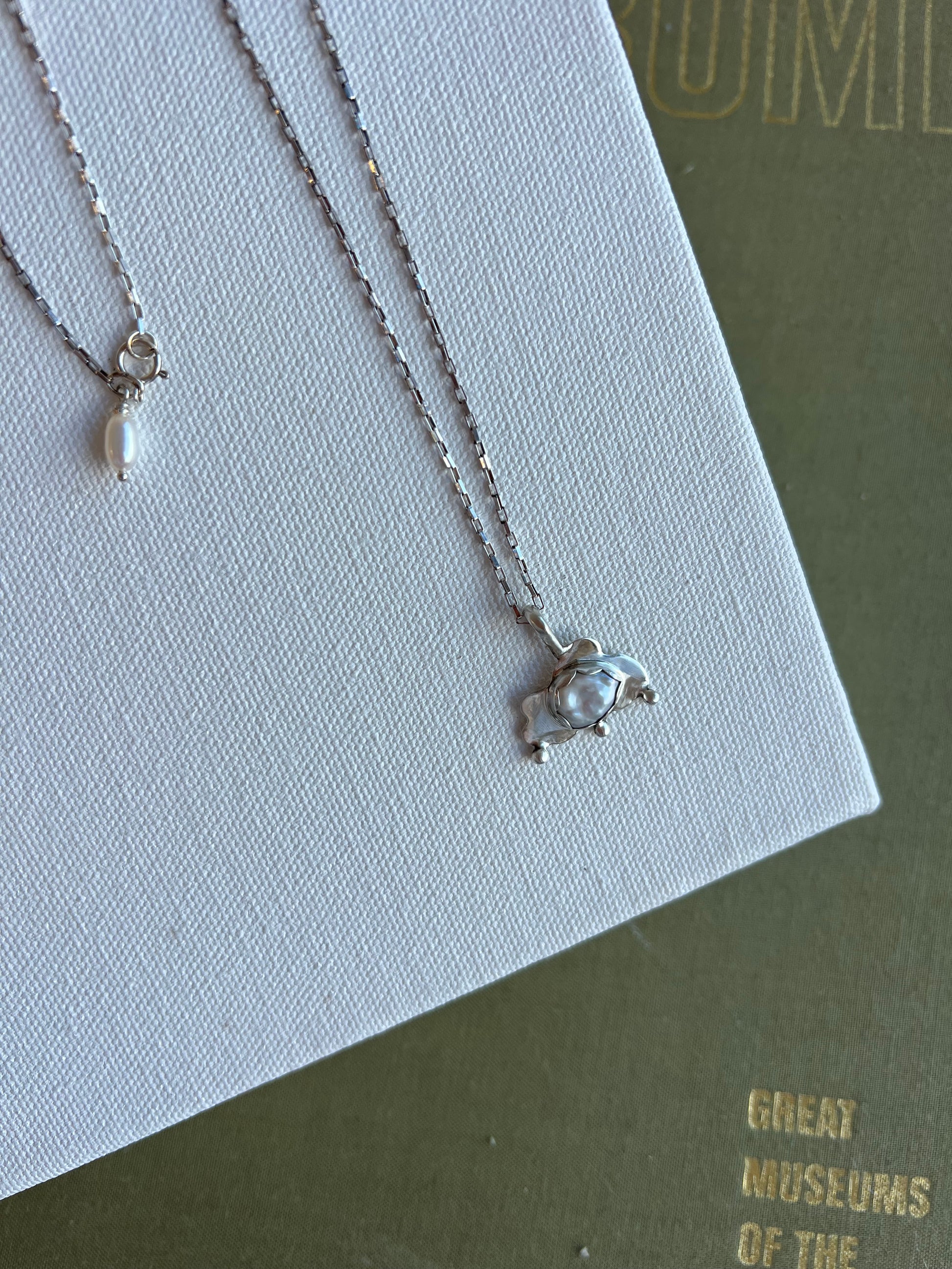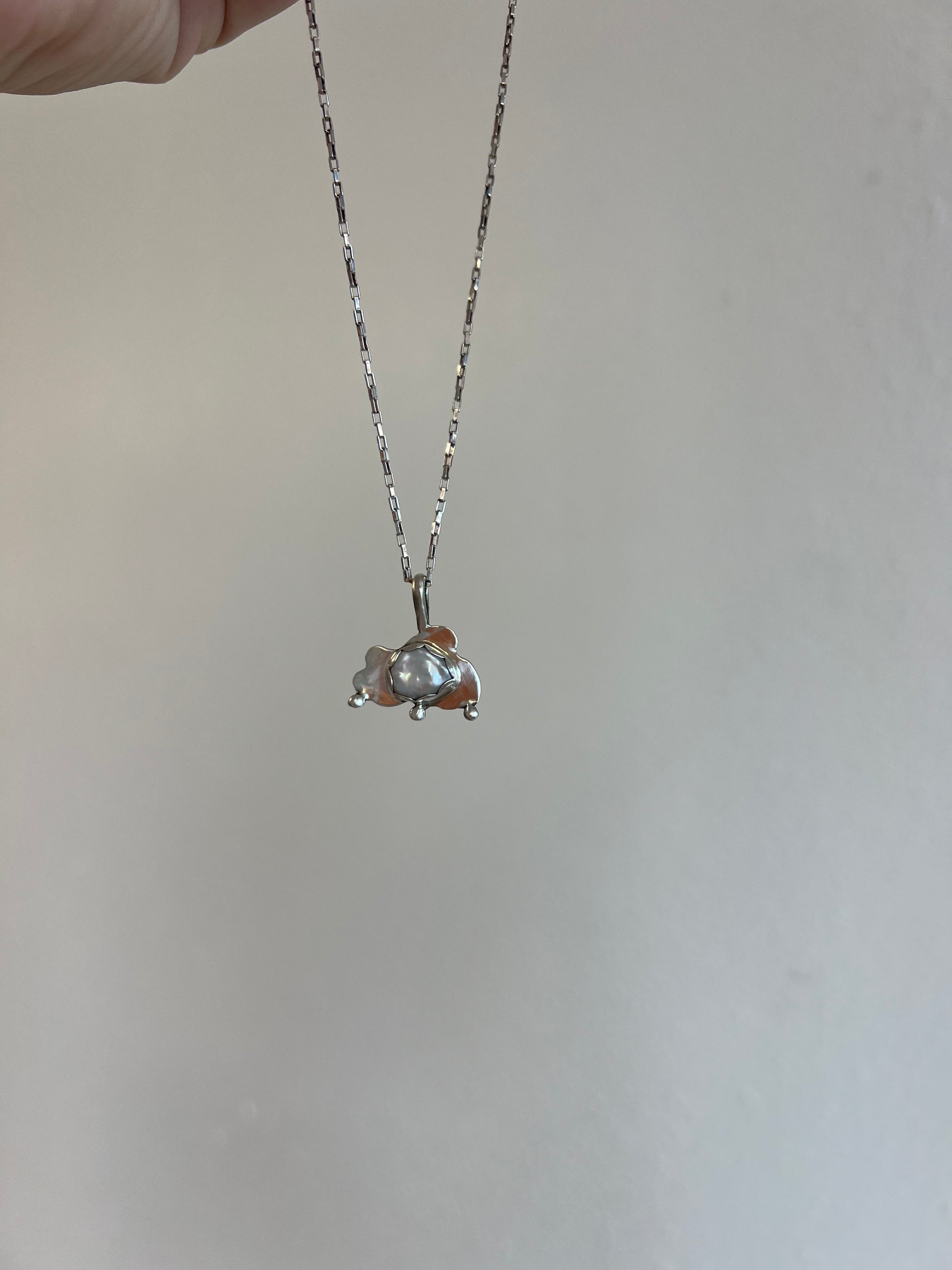 freshwater Keshi Pearl set in sterling silver on sterling silver chain. 18 inch chain included