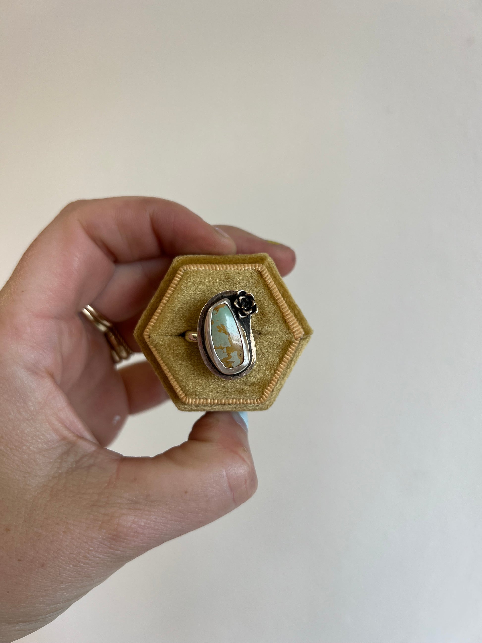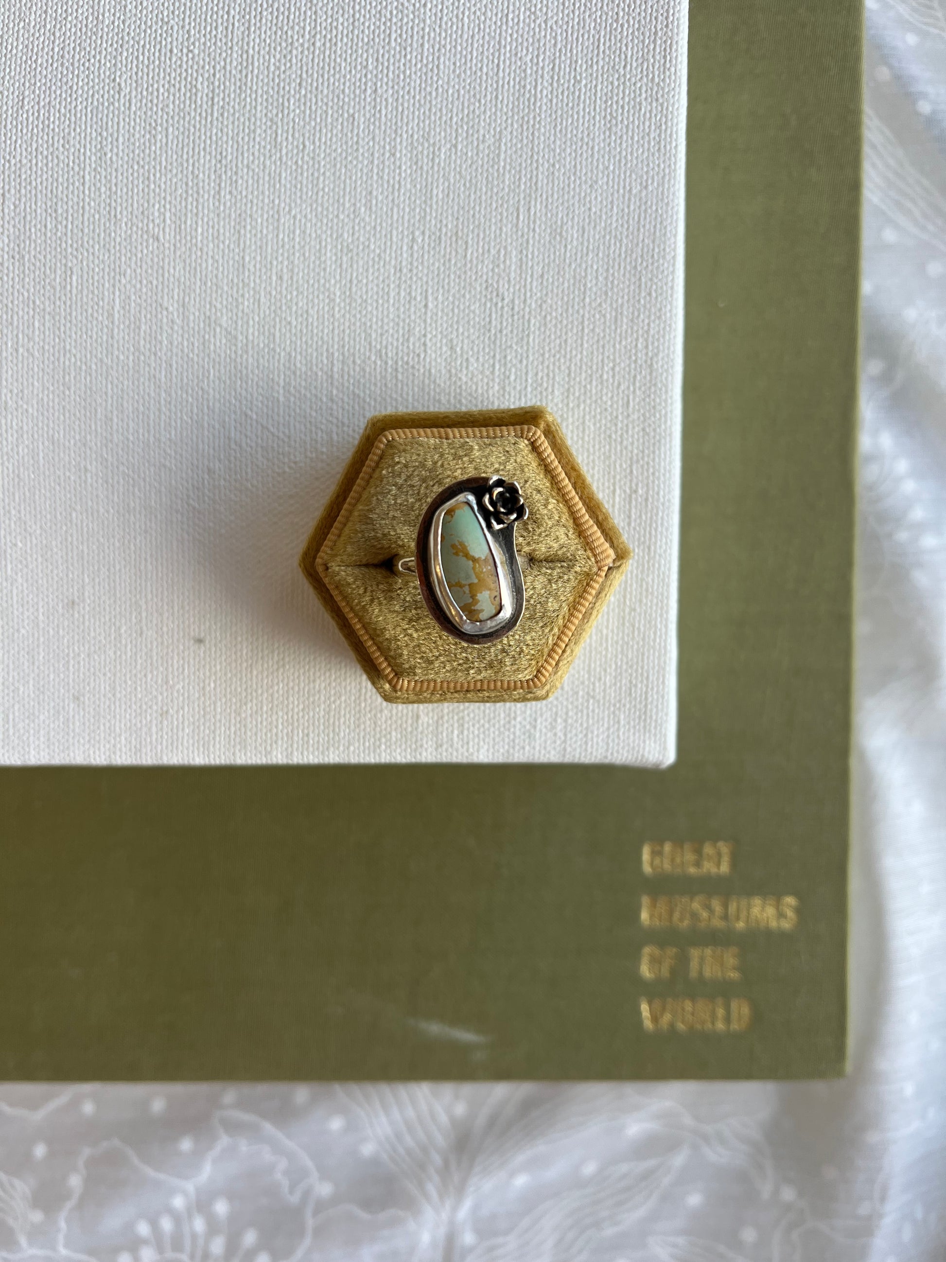 turquoise ring featuring a cast succulent. Perfect for the plant lover