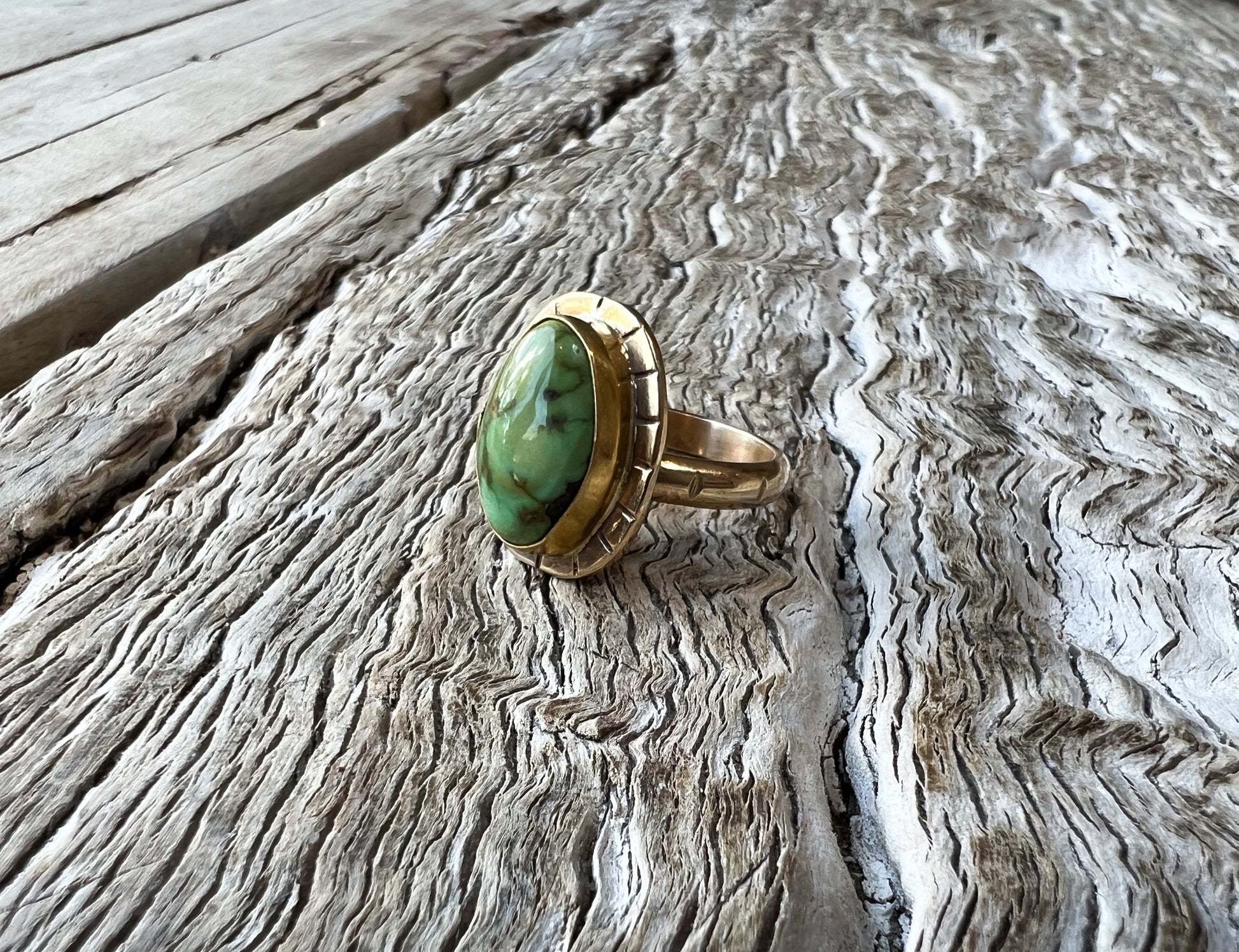 The very first 14k solid gold piece from Lavender + Lee. This gorgeous piece of Carico Lake Turquoise needed to be in gold. It has the most beautiful green and blue hues, so I’ve been saving it for something special. I’m super excited to be able to offer some pieces in gold now! It’s taken so so long to get to this point and I’m proud of how much LavLee has grown.